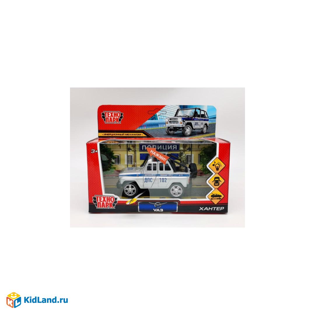 Машина металл свет-звук UAZ HUNTER ПОЛИЦИЯ 11,5 см, двери, фигурка, кор. Технопарк