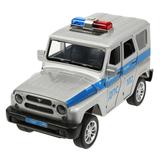 Машина металл свет-звук UAZ ХАНТЕР ПОЛИЦИЯ 17 см, двери, инерц, сереб, кор. Технопарк