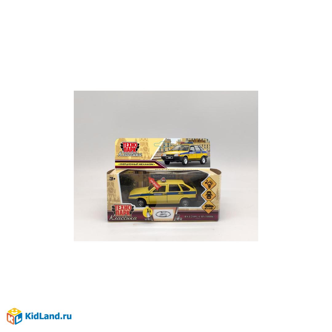 Машина металл свет-звук ваз-2109 "спутник"12см,дв,баг,инер,МИЛИЦИЯ желт,кор. Технопарк