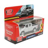 Машина металл TOYOTA HILUX 12 см, двери, багажн, инерц, серебристый, кор. Технопарк
