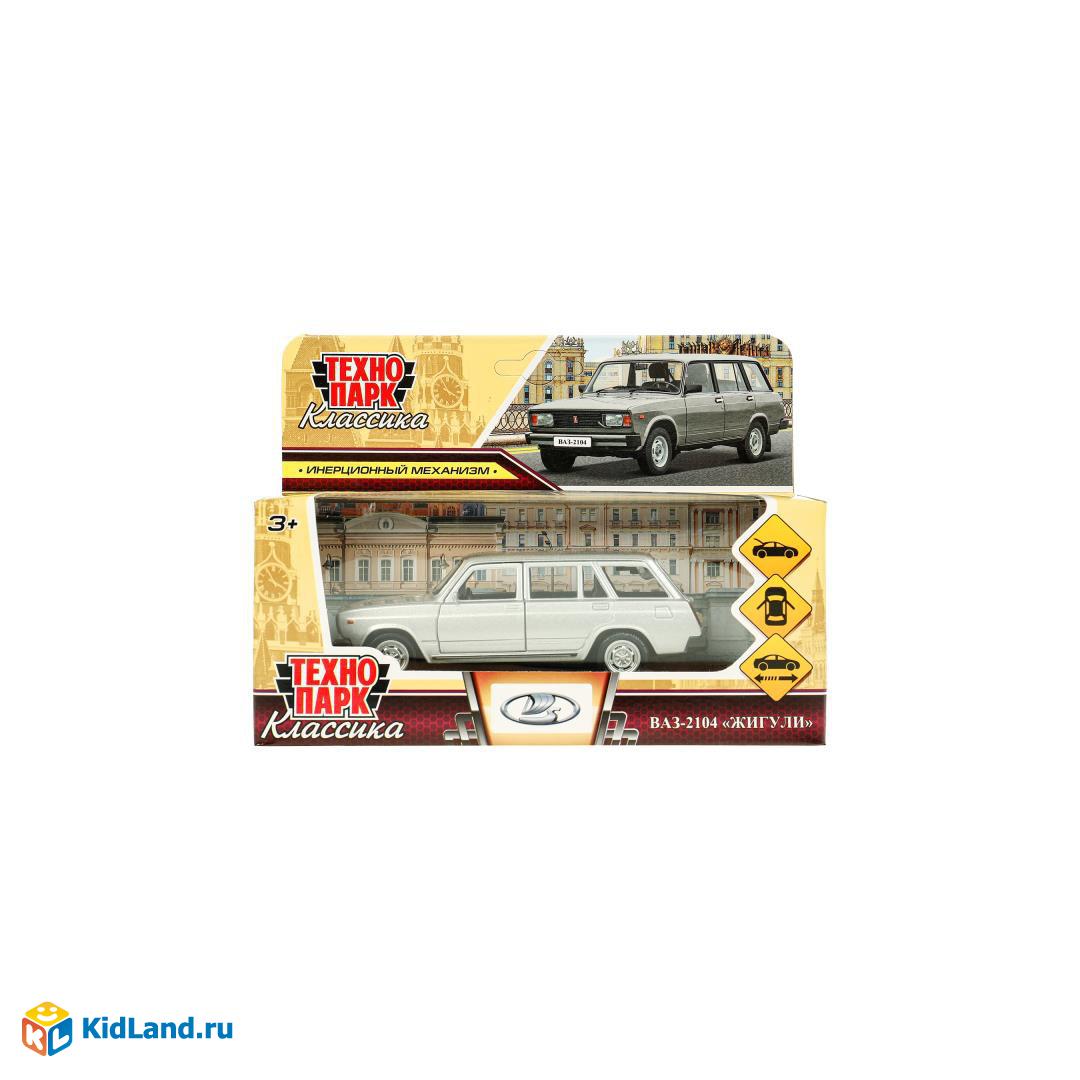 Машина металл ВАЗ-2104 ЖИГУЛИ 12 см, двери, багаж, инерц, серебристая, кор. Технопарк