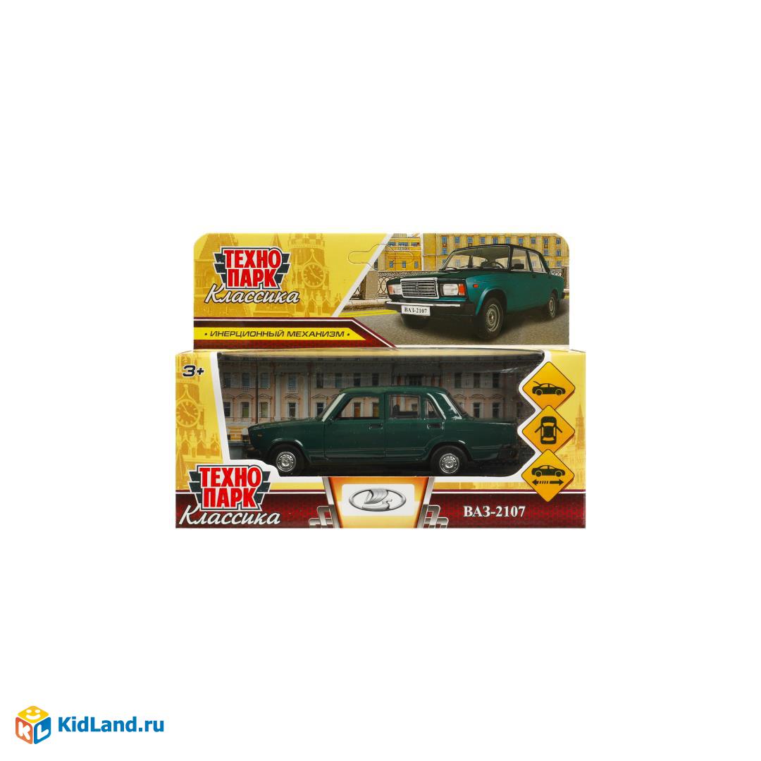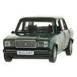 Машина металл ваз-2107 длина 12 см, двери, багаж, инерц, темно-зеленый, кор. Технопарк