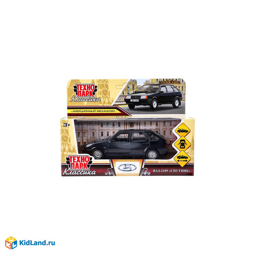 Машина металл ваз-2109 "СПУТНИК" 12 см, двери, багаж, инер,черный, кор. Технопарк