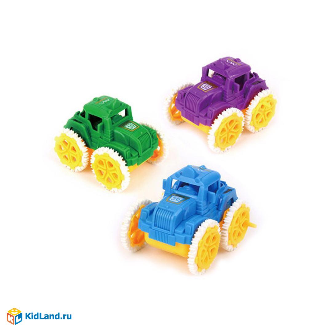 В игрушечной машинке-перевёртыше предусмотрен фрикционный механизм движения (на разгон). Цветовые варианты представлены в ассортименте. Размер машины составляет 7,5х6,8х6 см. Материал изготовления: пластмасса. Рекомендованный возраст: 3 года +
