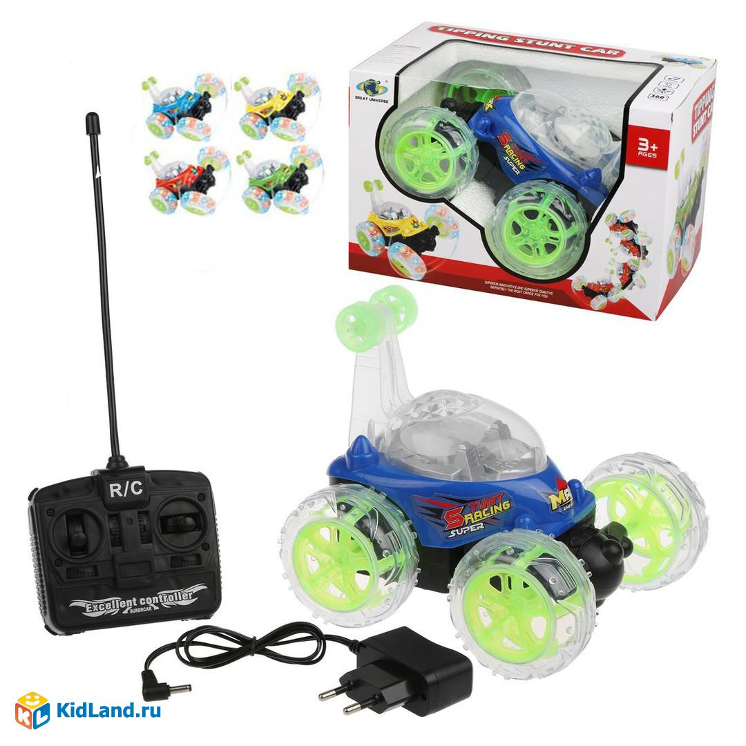 Машина перевертыш р/у, 4 канала, свет, звук, встроенный аккум., эл.пит.АА*2шт.не вх.в комплект, коробка