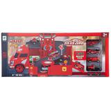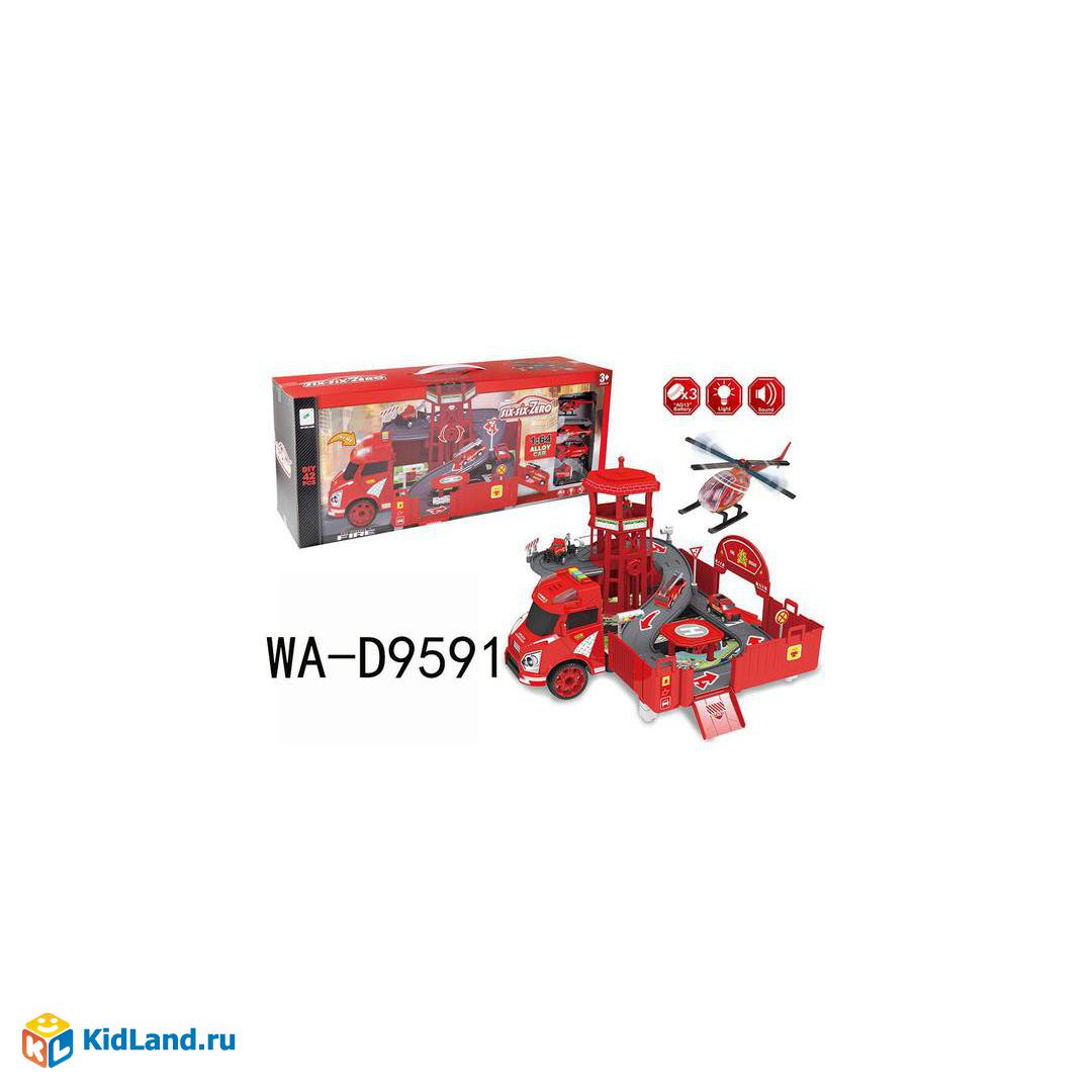 Машина-трансформер "Пожарная станция", 1:64, не менее 42 деталей, с набором машинок, аксессуарами, в коробке