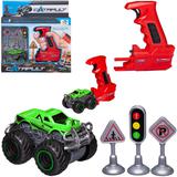 Комплектность: машинка – 1 шт., пусковое устройство – 1 шт., светофор – 1шт., дорожный знак – 2 шт.