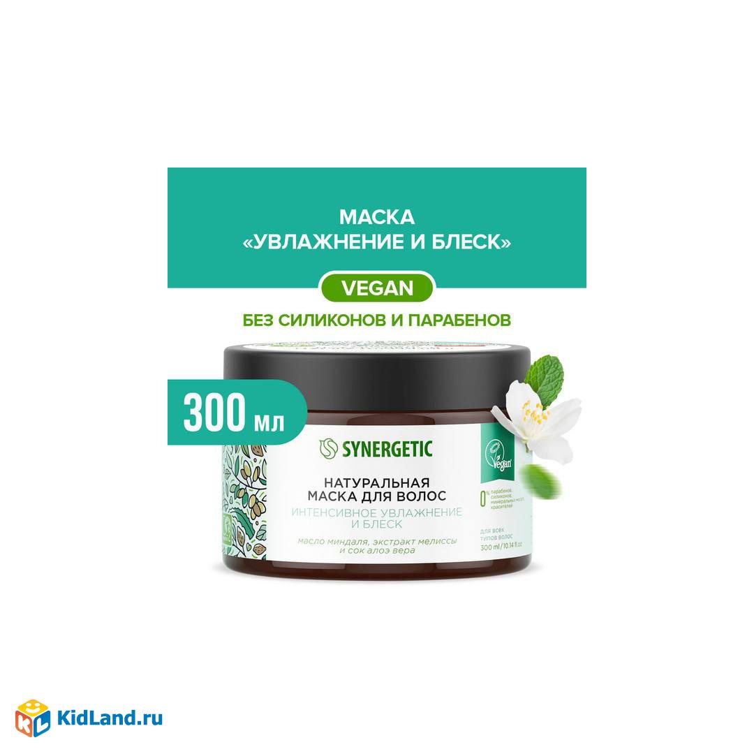 Маска для волос SYNERGETIC Интенсивное увлажнение и блеск. Натуральная, 300мл банка