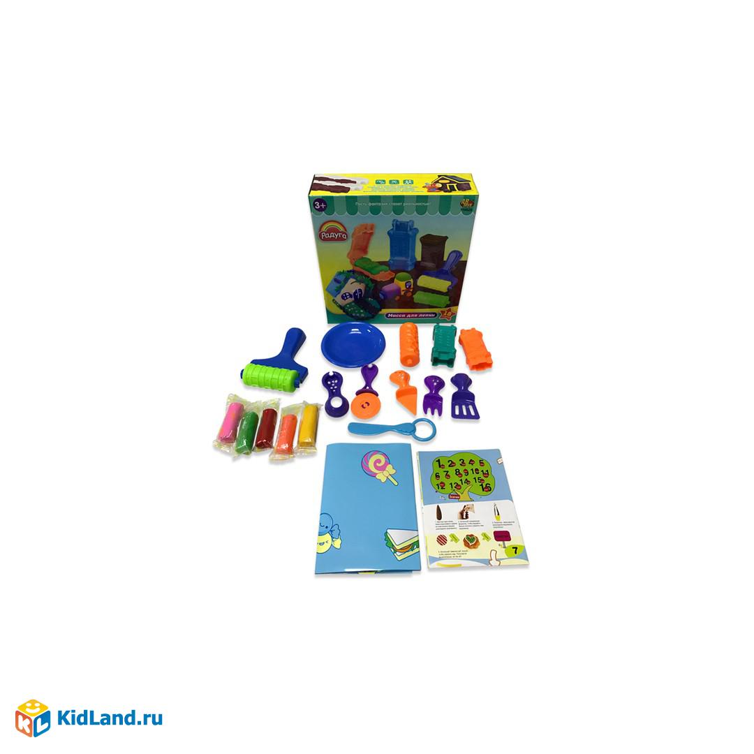 Большой набор для создания разнообразных блюд ТМ Радуга, от компании Merx (Меркс). В наборе 18 предметов:- 5 упаковок цветного мягкого пластилина- 2 пресс-формы- форма фигурная с дополнительной насадкой- нож для пиццы- тарелка- нож- 1 комплект кухонных приборов (4 предмета)- салфетка-скатерть для творчества- большая инструкция с рецептами, на русском языке.Все детали набора изготовлены из ярких высококачественных материалов. Масса для лепки соответствует всем стандартам качества и абсолютно безопасна для малышей.