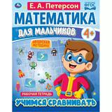 Рабочая тетрадь «Е. А. Петерсон. Учимся сравнивать. 4+» из серии «Математика для мальчиков» ТМ «УМка» - отличный помощник для маленьких непосед в освоении новых знаний в области математики: