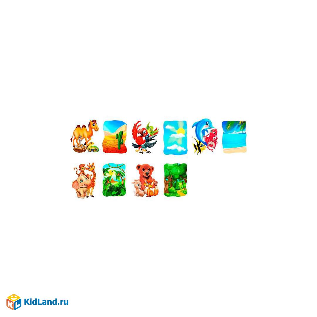 Melograno Пазл ANIMALS. Среда обитания 5 животных, каждый пазл из 2 х деталей, размер одной карточки 10 х 6 размер 1 детали 5 х 6 см. Всего 10 пазлов