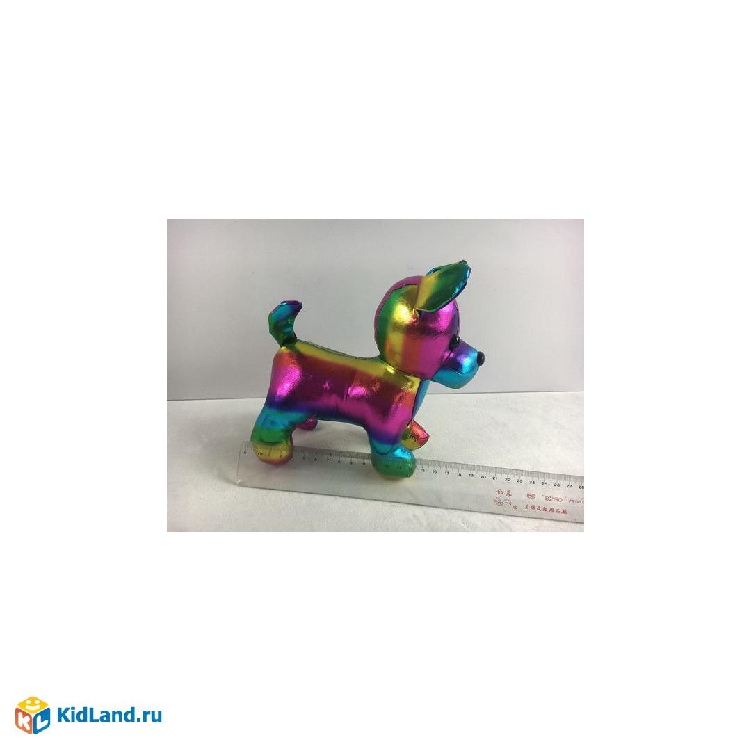 Замечательная разноцветная собачка из блестящего гладкого материала.