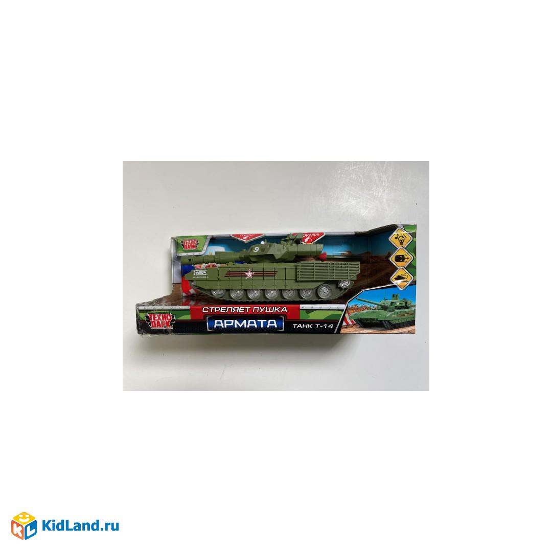 Модель пластик свет-звук АРМАТА ТАНК Т-14 21 см, пушка, инерц, зелен, кор. Технопарк