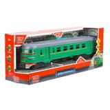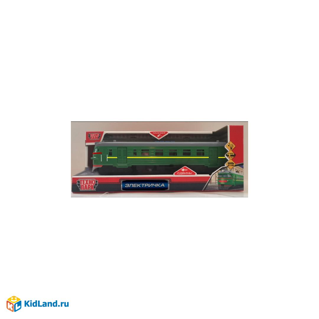 Модель пластик свет-звук ЭЛЕКТРИЧКА 30 см, 4 кнопки, инерц, зелен, кор. Технопарк