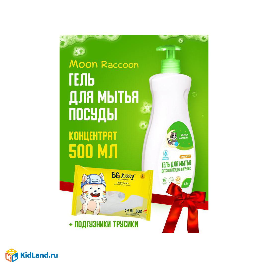 Moon Raccoon Premium Care. Гель для мытья детской посуды + Подарок Подгузники трусики L (9-14кг) 1шт