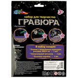 С помощью данного набора юный художник сможет создать эффектную серебристую картину на чёрном фоне. Контур рисунка уже нанесён на основу, остаётся только процарапать изображение специальным штихелем. Готовую поделку можно подарить близким или использовать для украшения интерьера.