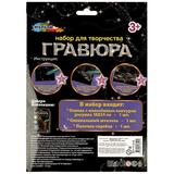 С помощью данного набора юный художник сможет создать эффектную золотистую картину на чёрном фоне. Контур рисунка уже нанесён на основу, остаётся только процарапать изображение специальным штихелем. Можно не повторять каждую черточку, главное - соблюдать направление штриха! Готовая поделка станет отличным вариантом для подарка близким или для украшения интерьера комнаты.