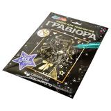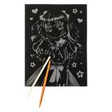 С помощью данного набора юный художник сможет создать эффектную золотистую картину на чёрном фоне. Контур рисунка уже нанесён на основу, остаётся только процарапать изображение специальным штихелем. Готовую поделку можно подарить близким или использовать для украшения интерьера.