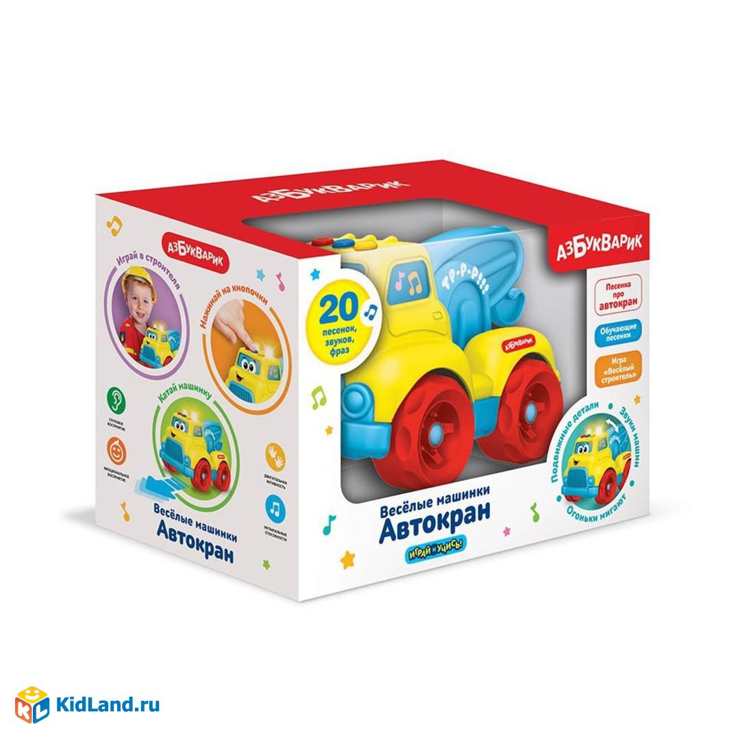 Желтый автокран спешит на стройку и ждет своего водителя! Нажимая на кнопочки, малыш послушает настоящий хит про автокран, познавательные песенки про счет, буквы и светофор. А главное – ребенок сможет поиграть в строителя, выполняя задания под музыку. Рев мотора, сияющая мигалка на крыше кабины, подвижные детали (крюк и стрела) – всё это сделает игру захватывающей и реалистичной! Такая игрушка не просто развлекает ребенка, но и развивает его фантазию, воображение, дает важные знания о безопасности и помогает в социальной адаптации.