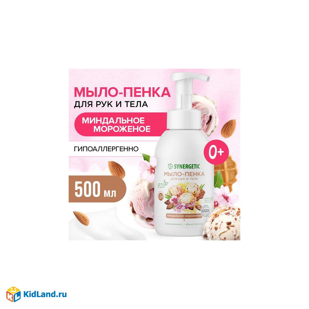 Мыло-пенка для рук и тела SYNERGETIC Миндальное мороженое Гипоаллергенное натуральное детское 500 мл