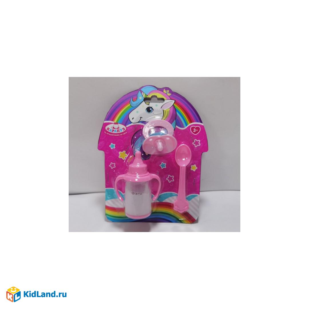 Набор аксессуаров, 3 предмета: поильник, соска, ложка, на блистере КАРАПУЗ
