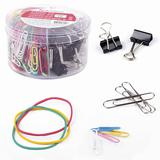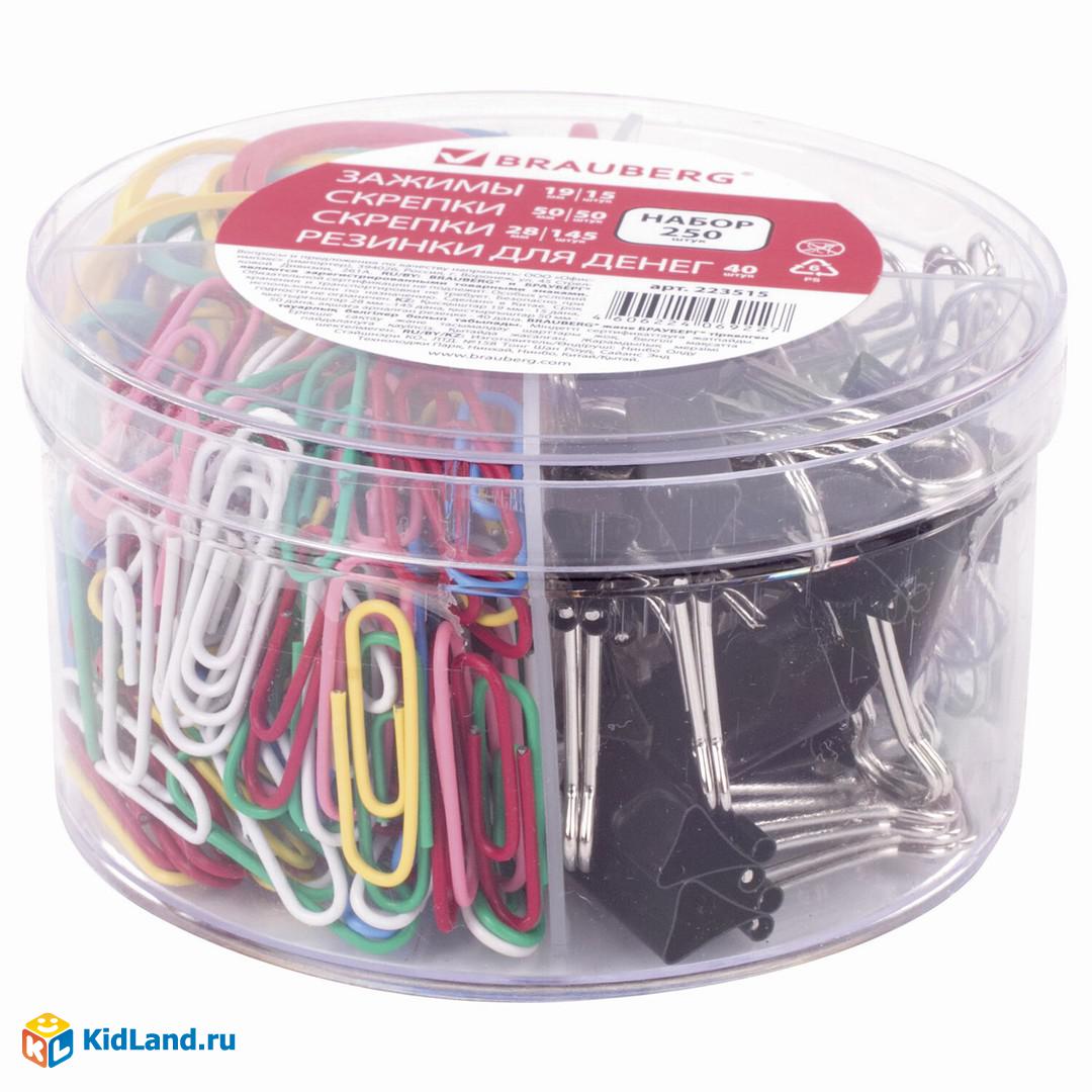 Набор BRAUBERG, зажимы 19 мм15 шт, скрепки 28 мм145 шт и 50 мм50 шт, резинки 40 шт, 223515