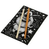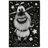 С помощью данного набора маленький поклонник мультсериала про весёлого домового сможет создать эффектную картину с изображением любимых героев. Контур рисунка уже нанесён на основу чёрного цвета, остаётся только процарапать изображение специальным штихелем. Готовую поделку можно подарить близким или использовать для украшения интерьера.