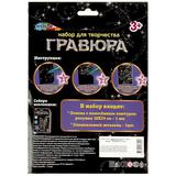 С помощью данного набора юный художник сможет создать эффектную серебряную картину на чёрном фоне. Контур рисунка уже нанесён на основу, остаётся только процарапать изображение специальным штихелем. Готовую поделку можно подарить близким или использовать для украшения интерьера.