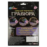 С помощью данного набора юный художник сможет создать эффектную золотистую картину на чёрном фоне. Контур рисунка уже нанесён на основу, остаётся только процарапать изображение специальным штихелем. Готовую поделку можно подарить близким или использовать для украшения интерьера.