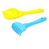 Цветовые варианты представлены в ассортименте. Длина игрушек составляет 18 см (грабли) и 23 см (лопатка). Предметы набора изготовлены из пластмассы. Рекомендованный возраст: 3 года +