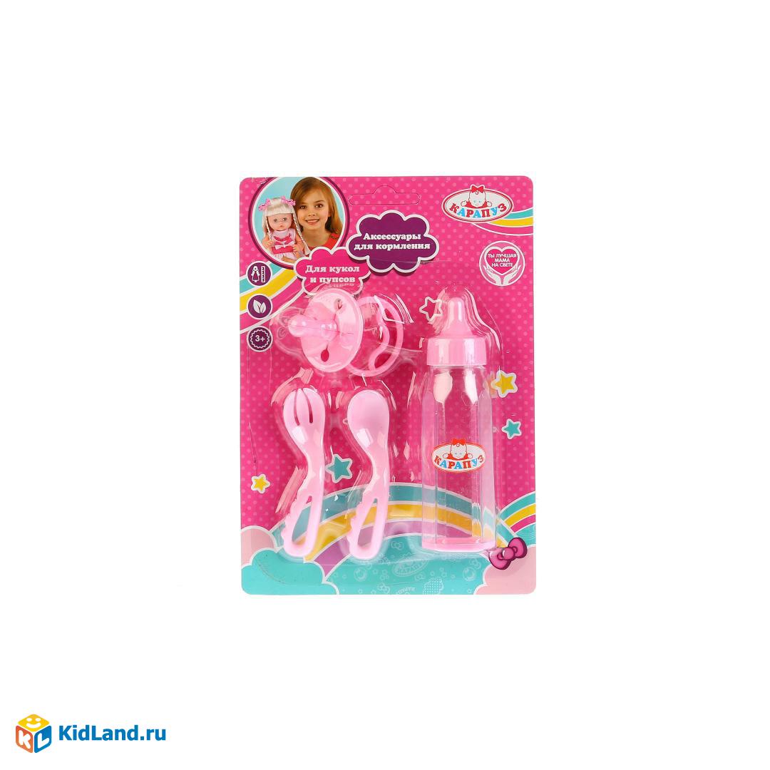 Набор для пупса "КАРАПУЗ" на 4 предмета (соска, бутылка, ложечки) на блистере