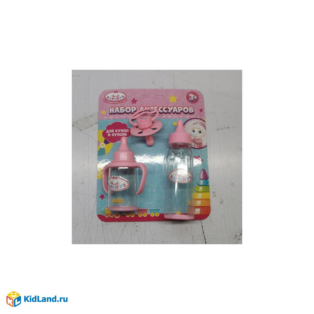 Набор аксессуаров, 3 предмета: поильник, соска, ложка, на блистере КАРАПУЗ