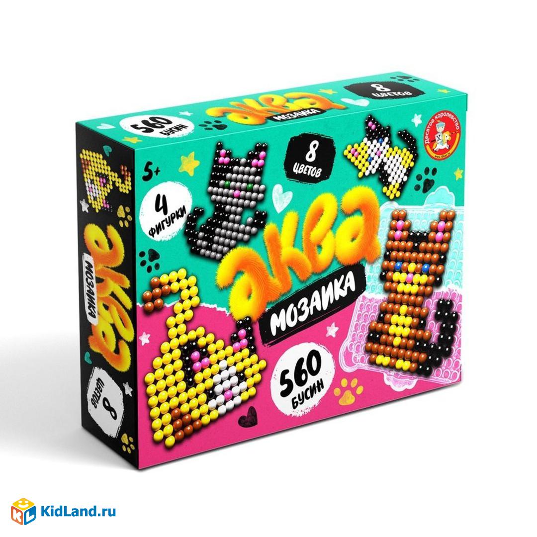 котиков, и играть с ними. Состав:- цветные бусины (диаметр - 5 мм) - 560 шт.- картинки для составления мозаики - 4 шт.- планшет для сборки мозаики (8х8 см) - 1 шт.- пинцет (5,5 см) - 1 шт.- распылитель (флакон) - 1 шт.- скребок - 1 шт.