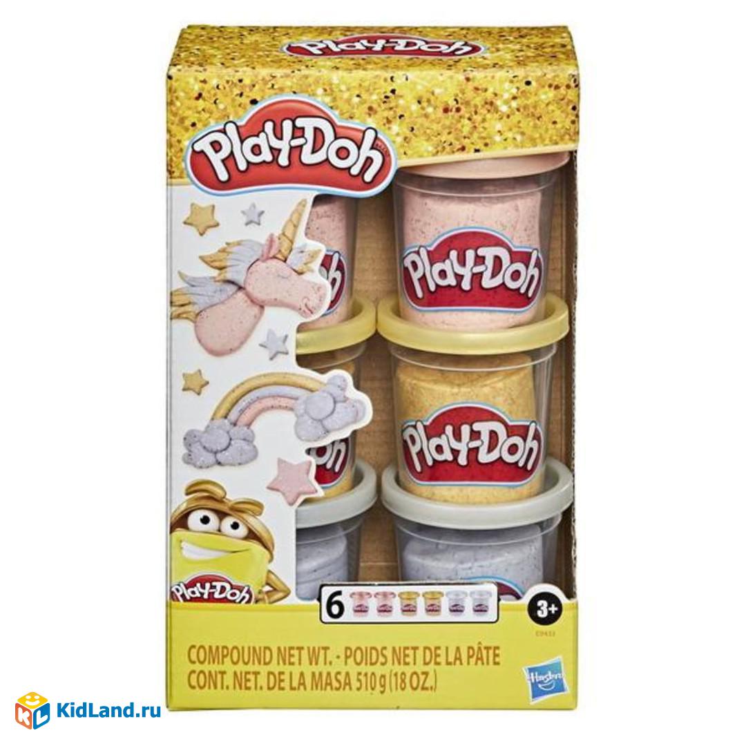 Дайте волю воображению и проявите творческий подход с золотом, серебром и новым составом Play-Doh из розового золота! Включает блестящий роллер для производства монет, позолоты и воплощения любых творческих идей!