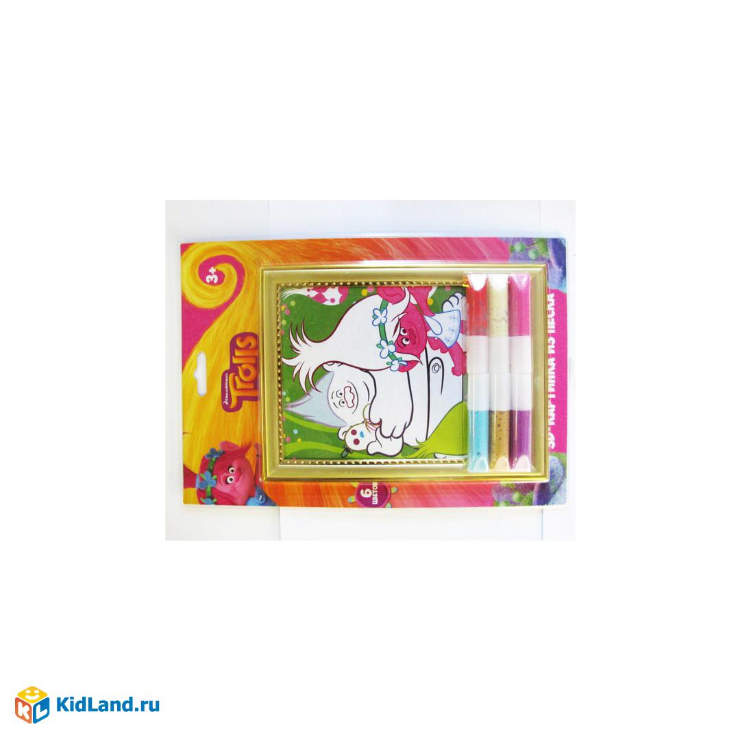 Набор Объемная картинка 3D Тролли, в наборе:рамка, картинка-трафарет, песок с клеем 6цв.* 5,5 гр.)