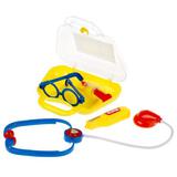 Набор доктора порадует вашего малыша и позволит ему почувствовать себя настоящим врачом. Набор доктора Айболита представляет собой компактный чемоданчик с удобной ручкой, корпус которого украшен изображениями героев любимого мультфильма. В комплект входят 4 ярких игровых аксессуара, напоминающих профессиональные медицинские инструменты, для увлекательного игрового процесса: очки, стетоскоп, шприц и градусник. С помощью набора можно расширить границы сюжетно-ролевых игр, ухаживая за больными игрушками и куклами. Все предметы из набора выполнены из яркого и качественного пластика, окрашены в насыщенные, радующие глаз цвета. Используемые красители не истираются и не выгорают. Рекомендовано детям от 3-х лет.