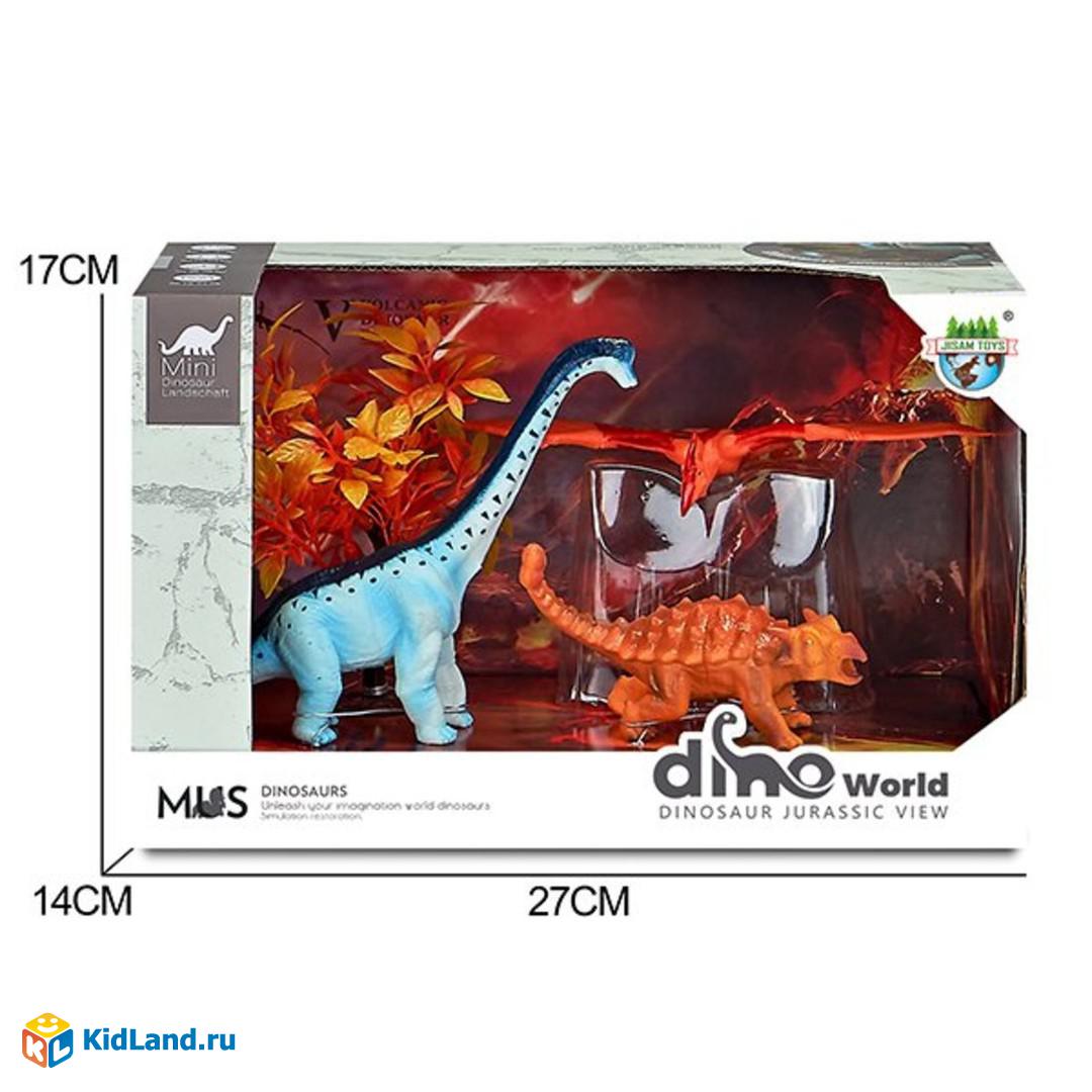 Реалистично выполненные фигурки динозавров познакомят ребёнка с удивительными существами, обитавшими на нашей планете. Это не только интересная игрушка, но и полезная: играя с небольшими фигурками, дети развивают мелкую моторику рук, сенсорное восприятие, знакомятся с различными формами и цветами. Игрушка прекрасно подходит для сюжетно-ролевых игр. Набор включает в себя 3 фигурки динозавров, разные по цвету, форме и размеру, а также дерево.