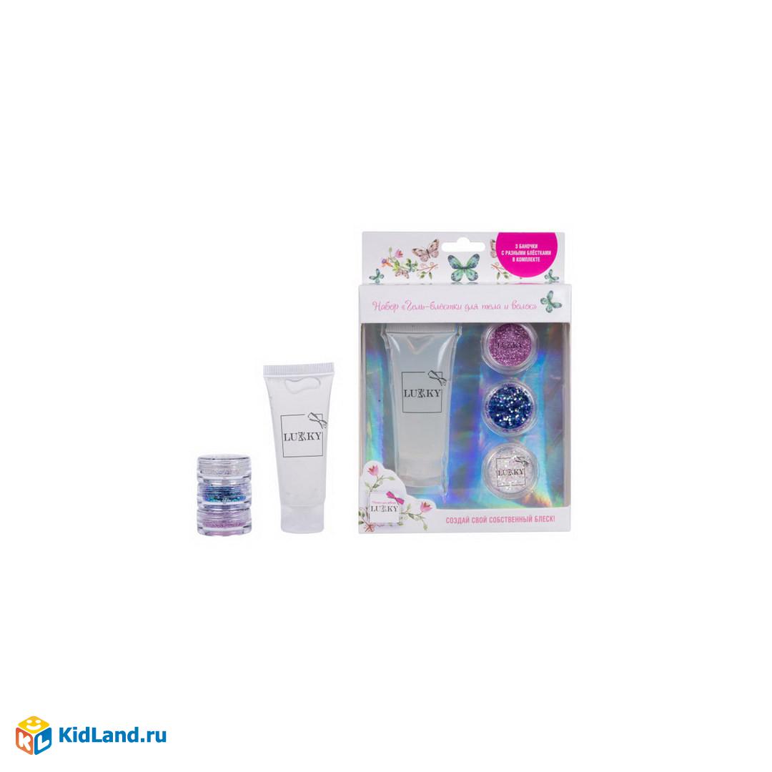 Набор косметики для девочек Lukky Сделай свой гель для волос 25 мл, с блёстками 3 цвета в наборе розового, синего и жемчужного цвета,по 3 г