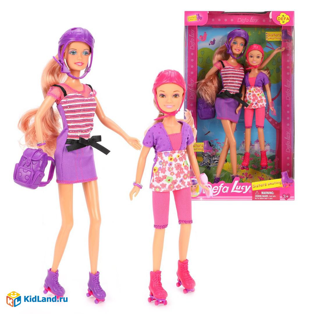 Набор кукол Defa «Прогулка на роликах». В комплект входят 2 очаровательные куклы-сестрёнки, которые очень любят кататься на роликовых коньках на свежем воздухе. Высота старшей куклы составляет 30 см, младшей: 22 см. Игрушки изготовлены из пластмассы с элементами из текстиля. Рекомендованный возраст: 3 года +