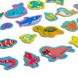Морские обитатели бывают разные! Хотите узнать о них больше? Набор магнитов познакомит малыша с различными рыбами и прочими подводными жителями. Изучайте их названия, узнавайте, что они едят, запоминайте их особенности. Играть можно на холодильнике или на любой другой магнитной поверхности. Игра развивает логику, воображение, память и мелкую моторику.