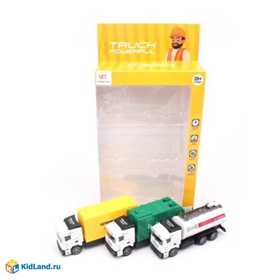 Игровой набор металлических машин станет достойным пополнением в гараже у ребёнка. Он включает 3 металлические грузовые машины, представленных разными моделями. Средний ориентировочный размер машин составляет 12,8х3,5х6 см. Изготовлено из металла с элементами полимерных материалов. Рекомендованный возраст: 3 года +