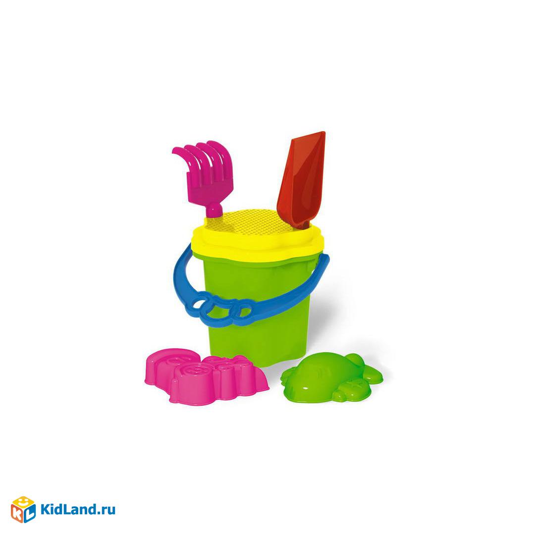 Набор № 105 ведро-цветок 0,7 л, сито, грабли 20см, совок 21 см, 2 формочки