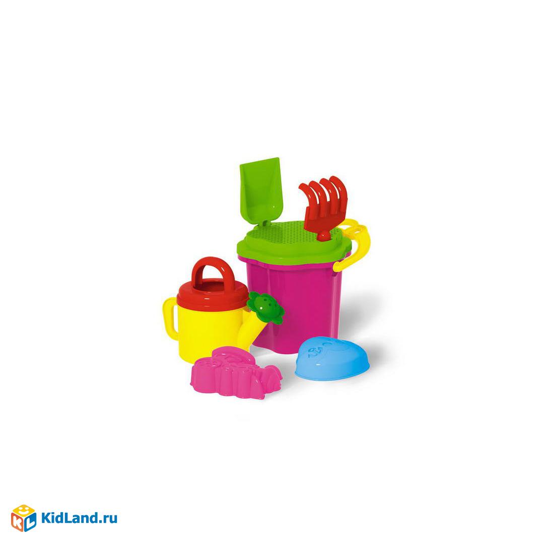 Набор № 108 ведро-цветок 0,7 л, сито, грабли 20 см, совок 21 см, лейка 0,4 л, 2 формочки
