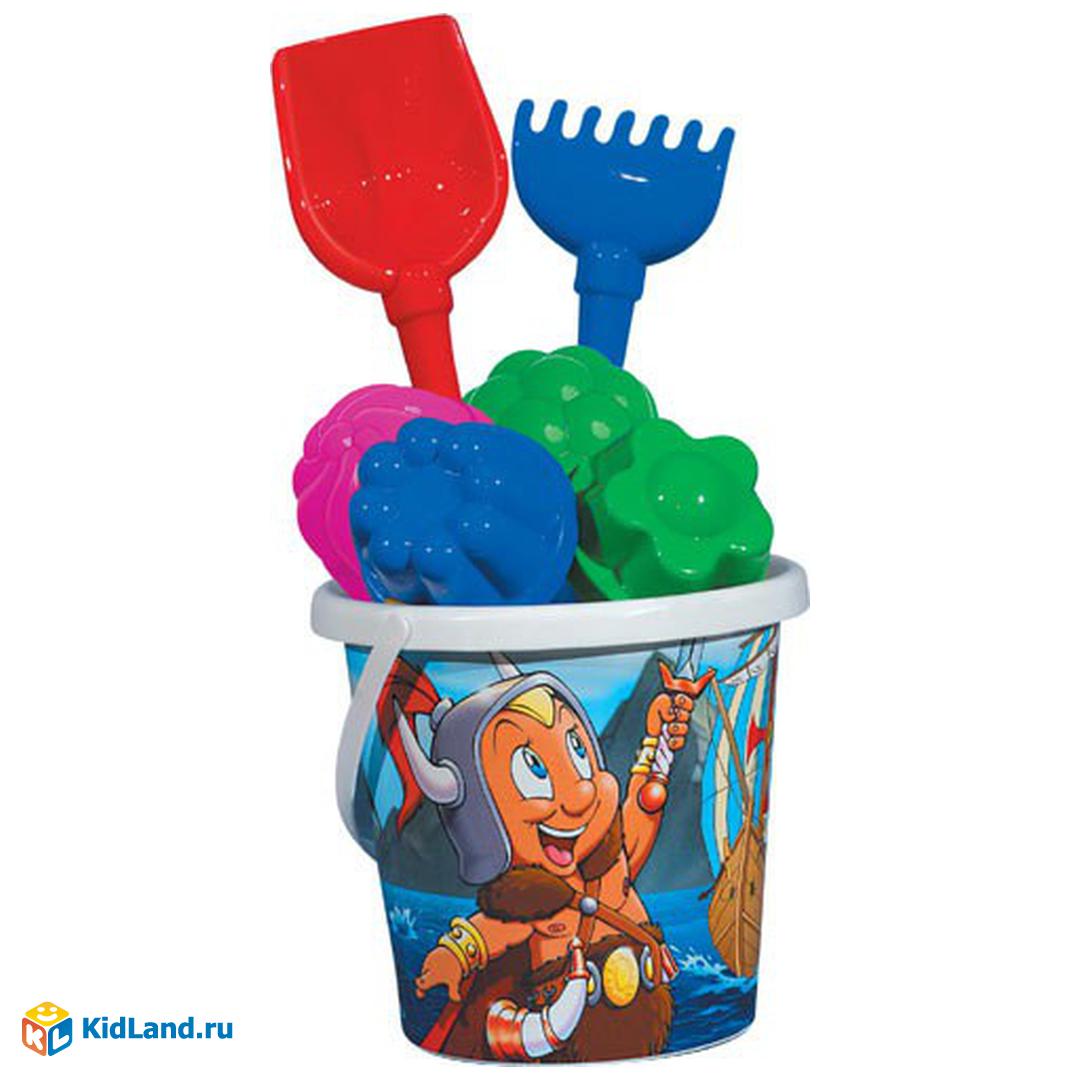 Набор №120 (Ведро с наклейкой, лопатка №5, грабельки №5, 4 формочки
