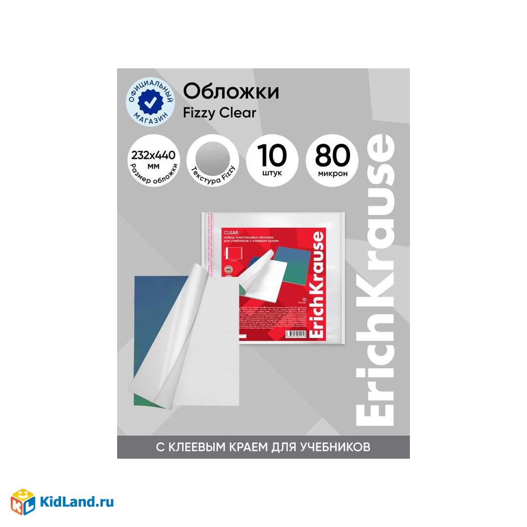 Набор пластиковых обложек ErichKrause Fizzy Clear, для учебников, с клеевым краем, 232х440мм, 80 мкм (пакет 10 шт.)