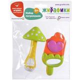 В комплект входят 2 красочные погремушки, выполненные в форме мороженого-эскимо и грибочка. Они обладают лёгким весом и удобной для детской ручки формой.