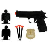 - в комплекте: пистолет, безопасные пули, значок, мишени
