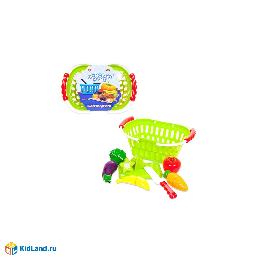 Помогаю маме. Набор продуктов в корзине для резки на липучках.Комплектация: 15 предметов: корзина, баклажан (2 части), яблоко (2 части), брокколи (2 части), морковь (2 части), карамболь (2 части), банан (2 части), нож, разделочная доска.Размер упаковки (д/ш/в): 24,5x16,5x10,5 см.