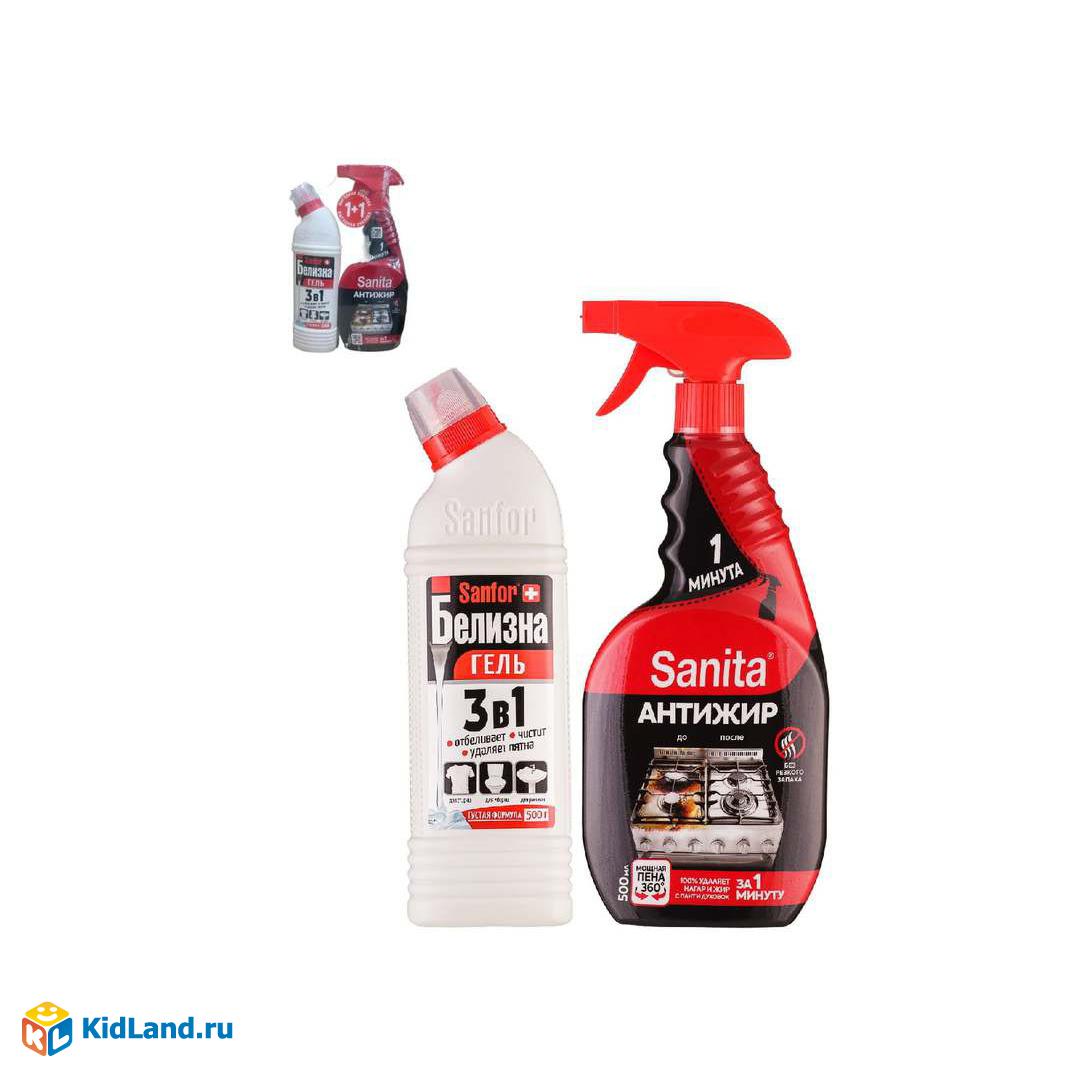Набор SANITA Спрей АНТИЖИР 1 минута, 500 мл + Sanfor Белизна гель, 3в1, 450 г