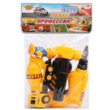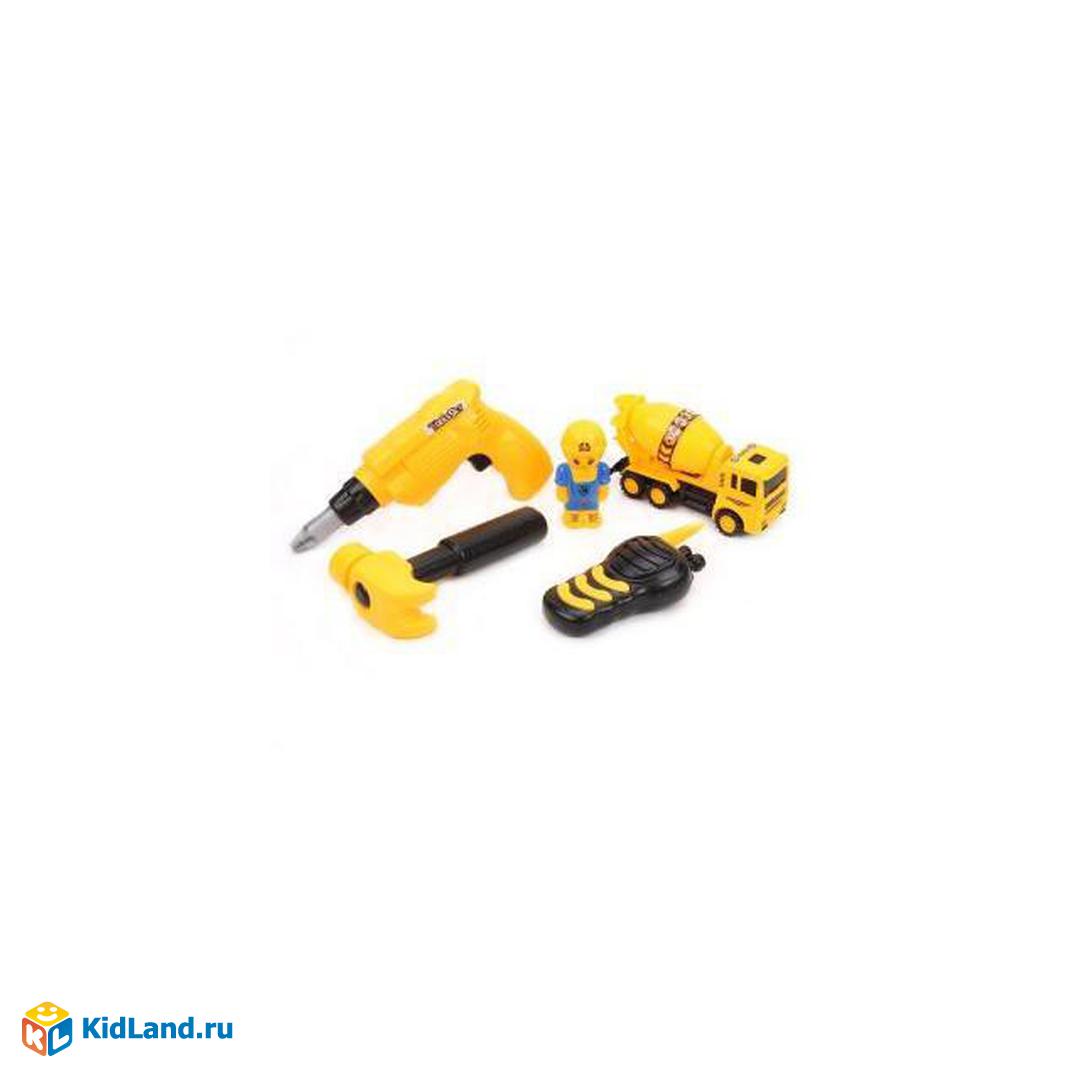 Набор юного Строителя предназначен для сюжетно-ролевых игр, способствующих развитию ребёнка. В комплекте - 5 предметов, среди которых мальчик найдёт дрель, рацию, молоточек, фигурку рабочего высотой 8 см и машинку-бетоносмеситель размером (ДхШхВ) 14х4х7 см.